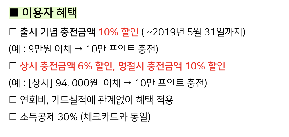 상시 충전금액 6% 할인 혜택이 있어서 사용자에게는 나쁘지 않을 듯 하다.