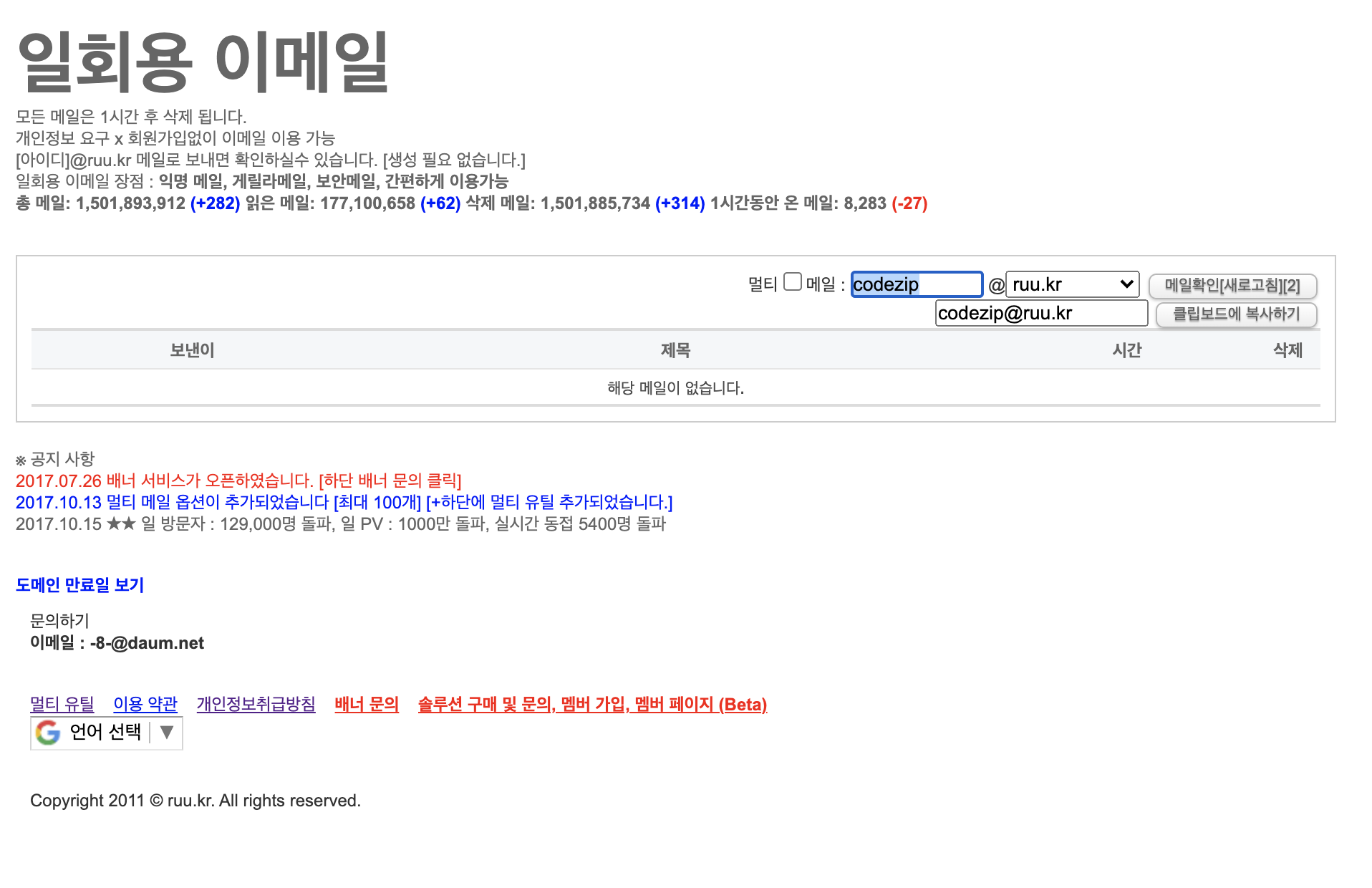 회원가입이 필요없고, 1시간 후면 메일은 자동 삭제된다.