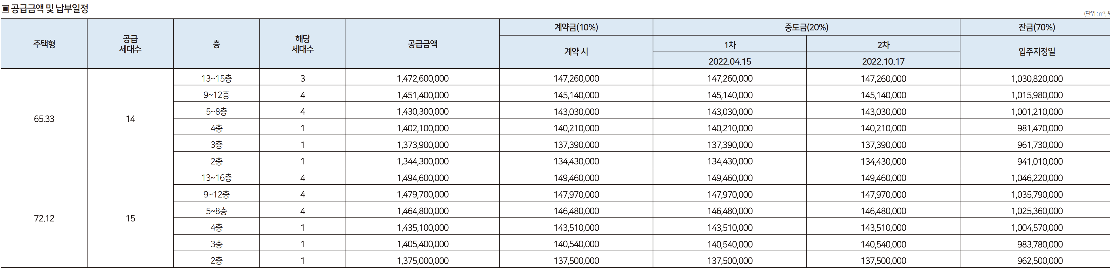 중도금 10 % : 1.5억 (연체 가능한 것으로 보임 / 확인 필요)