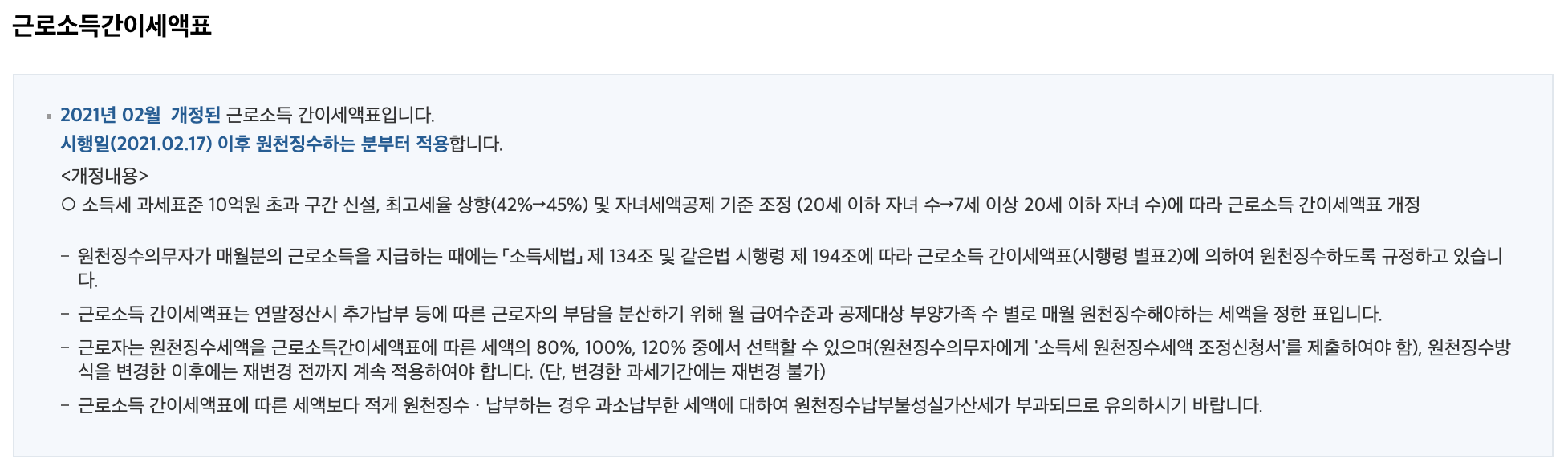 근로소득세 징수는 매달 간이세액표에 따라 임시로 세금을 낸뒤 연말정사을 통해 이미 낸 세금과