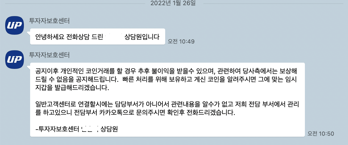 - 현재 조사 중으로 업비트에서 전화가 갈 예정이다. 네