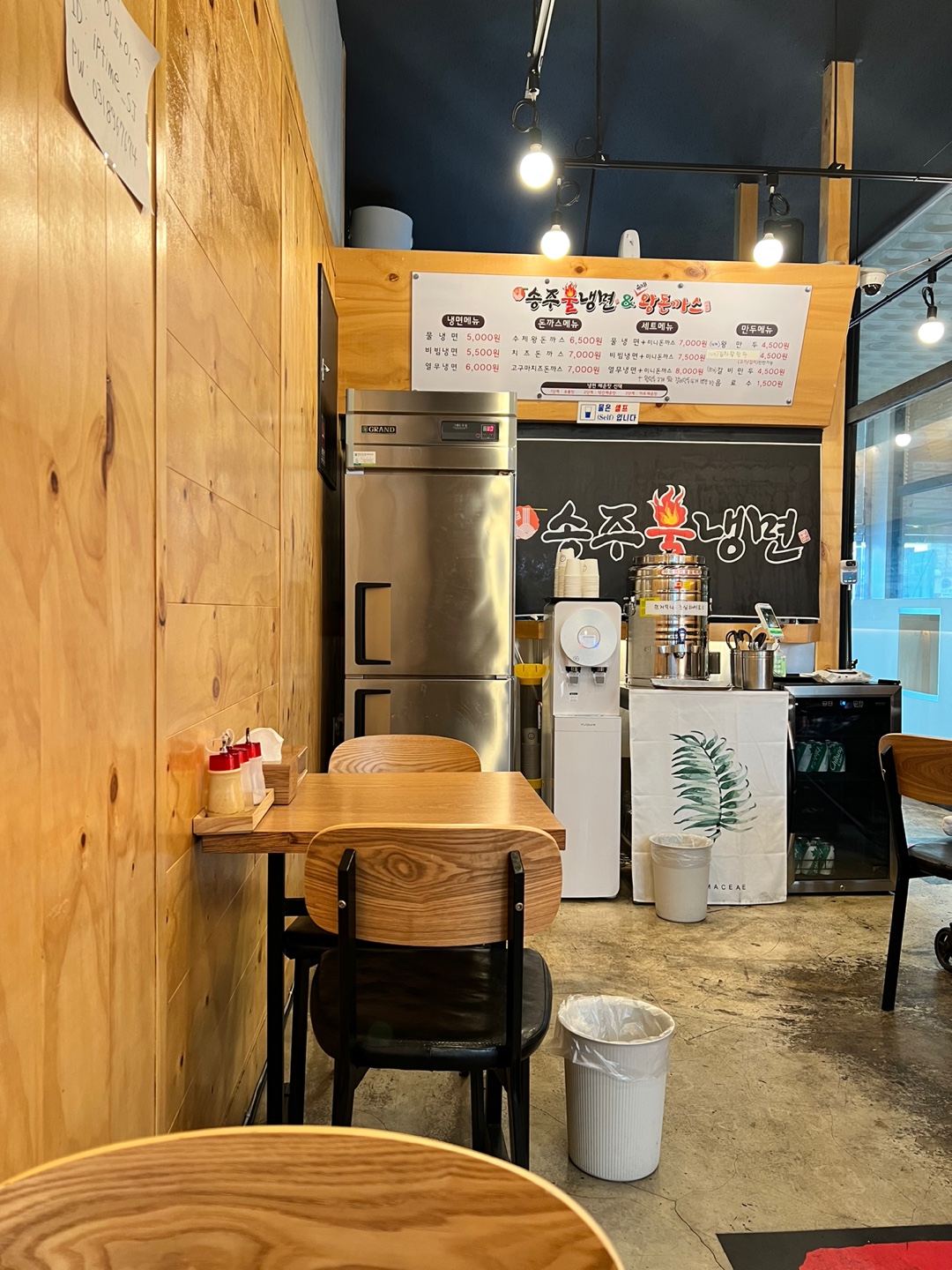기존에 떡볶이 가계 인테리어 구조를 그대로 사용을 하면서 입구쪽에 주방이 있는 구조이다.