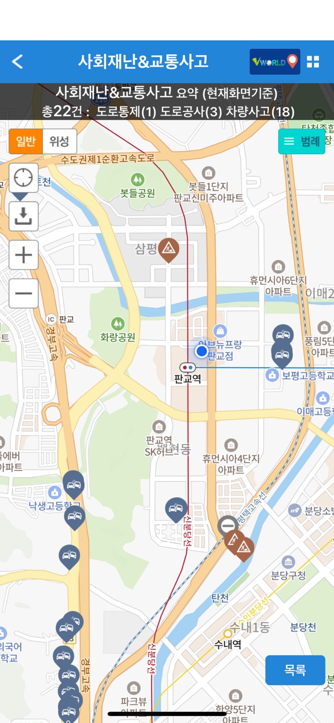 교통사고 나 공사가 진행되는 정보도 손쉽게 볼 수 있다.