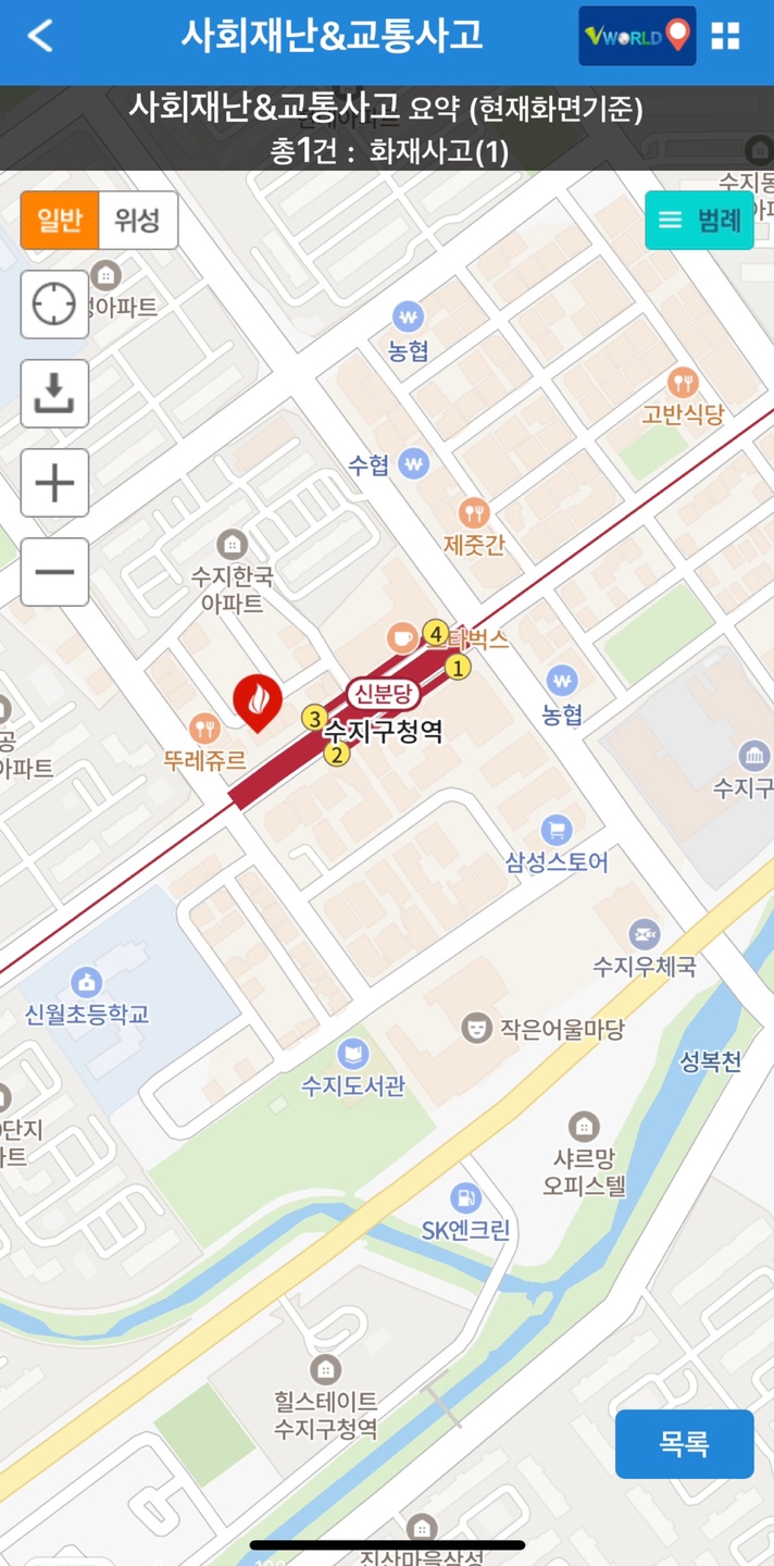 주변의 재난 사고 상황과 위협 시설 정보 등을 한 눈에 볼 수 있다.